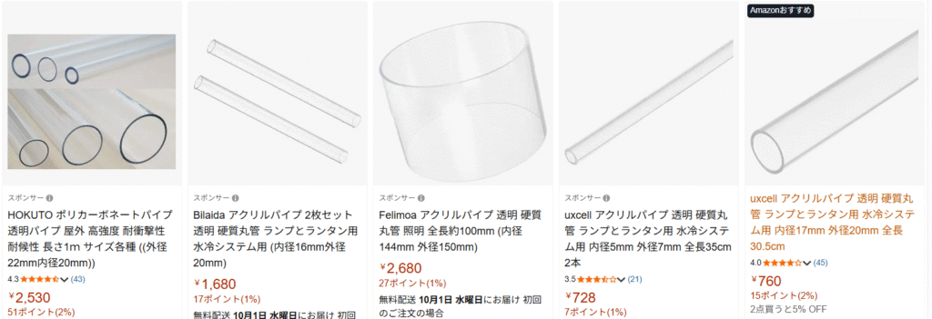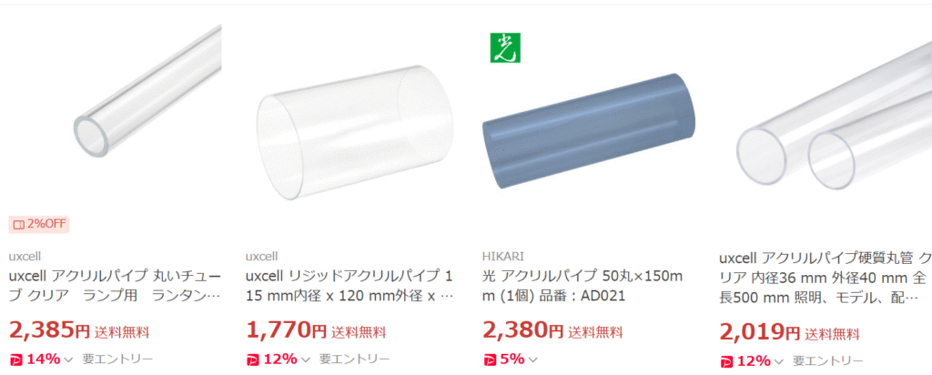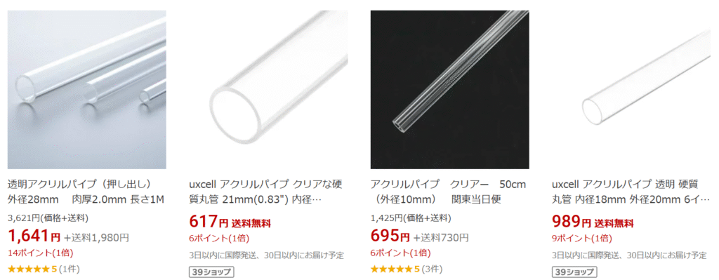 アクリルパイプを買うなら楽天やAmazonがおすすめ!