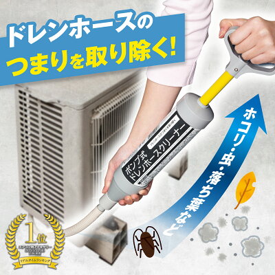 長年使っていたエアコンから突然ポタポタと瑞から水が落ちてきて、とりあえず即停止、フィルター掃除した。翌日恐る恐るエアコン運転。そして約2時間経過、突然吹出口中央から滝のような水が落ちてきた。 原因はドレンホースつまり? とりあえずネットで検索したらこのポンプが見つかったのでダメ元で購入。 到着してドレンホースに繋いで勢いよく5回シュポシュポしたらヘドロが出てきた。 「あれ?これだけ?」と不安だったが、あれから1週間。24時間つけっぱなしにしてるが水が出ない。直ってますやん!すごいわ、これ(笑)