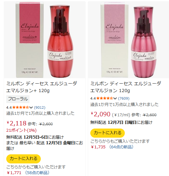 時期にもよると思いますが、ミルボンヘアミルクは2,127円~でした。