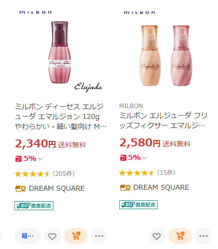 時期にもよると思いますが、ミルボンヘアミルクは2,340円~でした。