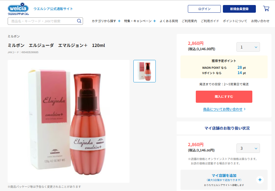 ミルボンヘアミルクは、ウエルシアで販売しています。